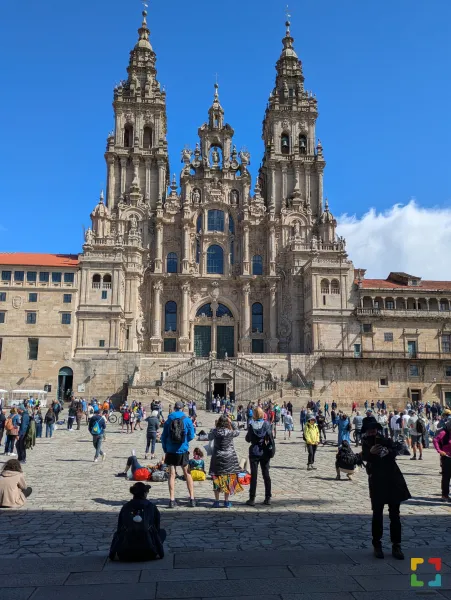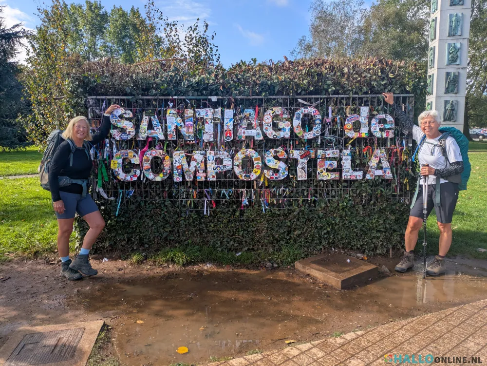 Terug op het plein is het nagenieten bij het zien van de stroom van de nieuw arriverende pelgrims. Je deelt uiteindelijk toch een ervaring met hun. En het leuke is dat zowel vandaag als gisteren mensen binnen komen die je al eerder hebt ontmoet. De mannen vinden het vreemd dat je op een plek zo ver van huis zo vaak begroet word door "bekenden"