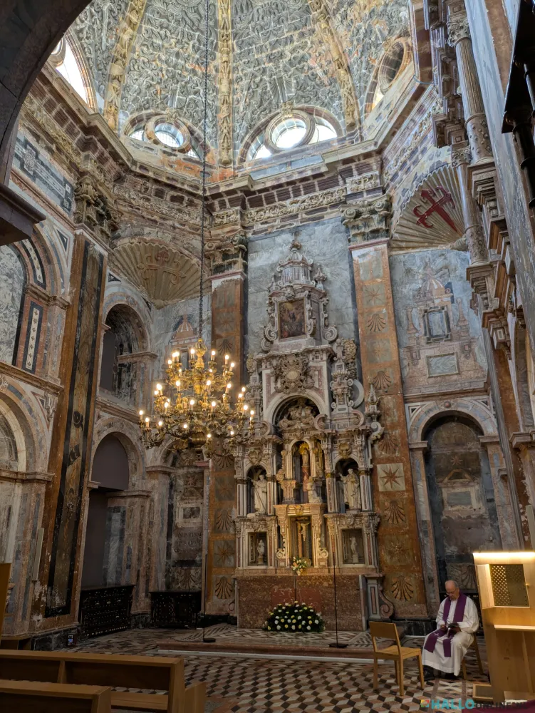 Het hoofdaltaar, gewijd aan de heilige Jacobus is een en al pracht en praal met veel goud, zilver en edelstenen.