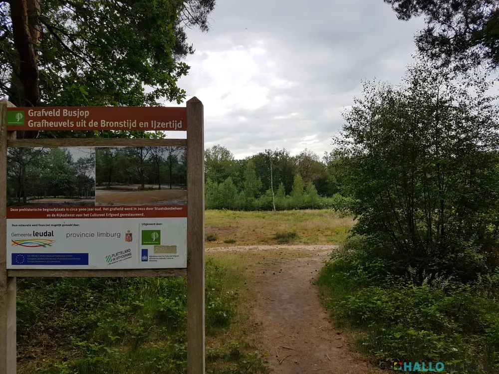 Het grafveld bij de Busjop herbergt maar liefst 17 van de meer dan 50 gerestaureerde grafheuvels. Deze interessante, lage heuvels zijn gemaakt van plaggen en bevatten aardewerken potten met daarin de asresten van de bewoners van dit gebied. In die tijd werden de overledenen gecremeerd, waarna de as en botresten in een urn werden geplaatst. Onder elke onderzochte grafheuvel zijn de resten van één, soms twee personen gevonden. Daarnaast zijn er tientallen urnen en enkele fragmenten van bronzen voorwerpen ontdekt. Ook zijn er afslagen van vuursteen aangetroffen die stammen uit de vroege prehistorie, wat erop wijst dat er zelfs in de Steentijd al mensen verbleven op de plek waar later dit grafveld ontstond.