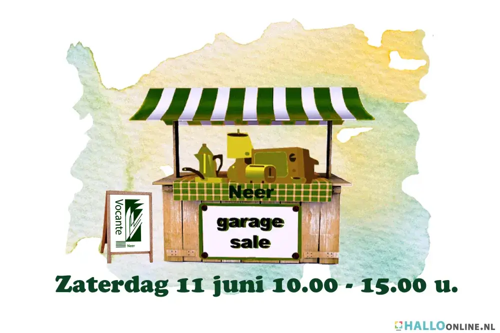 Zaterdag 11 juni organiseert Gemengd Koor Vocante een garagesale in en rond om de kern van Neer. Tussen 10.00 en 15.00 uur vindt u bij de deelnemers de meest leuke spulletjes. Deelnemers zijn te herkennen aan ballonnen en de raamposter ´Wij doen mee`.