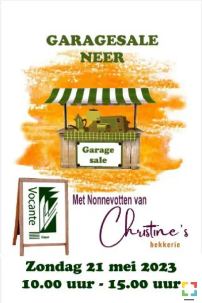 Op een paar plaatsen is er ook een hapje en een drankje te krijgen. Zoals b.v. bij Christine´s Bekkerie. Zij zal die dag ook heerlijke Nonnevotten bakken. Een plattegrond met alle deelnemers is verkrijgbaar bij de deelnemende adressen die te herkennen zijn aan ballonnen en de raamposter ´Wij doen mee´. Ook op de website van Vocante (www.vocante.nl) kunnen bezoekers via een plattegrond zien in welke straten er verkooppunten zijn. Dus heb je zondag 21 mei niets te doen, kom naar de Garagesale in Neer!