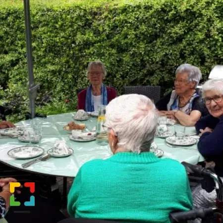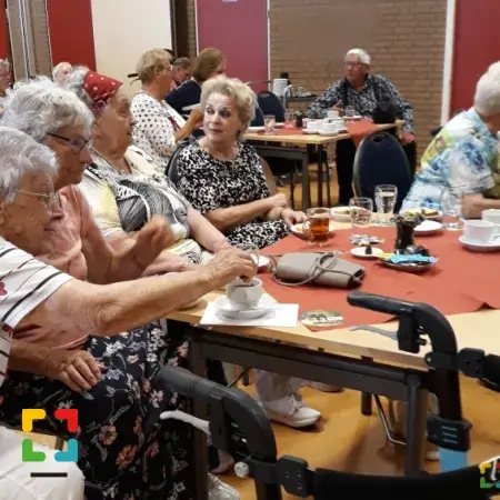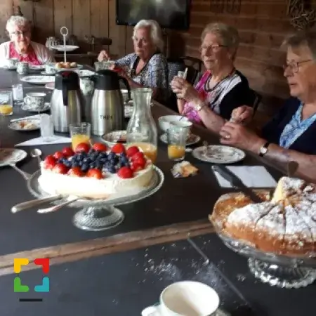 Als afsluiting was er een fijne vanillecake en een kwarktaart met vers fruit. Na drie en een half uur aan tafel, had iedereen zijn buik wel vol en is men tevreden naar huis gegaan. Wat een topmiddag Het was ‘Genieten’ met een grote ‘G’!