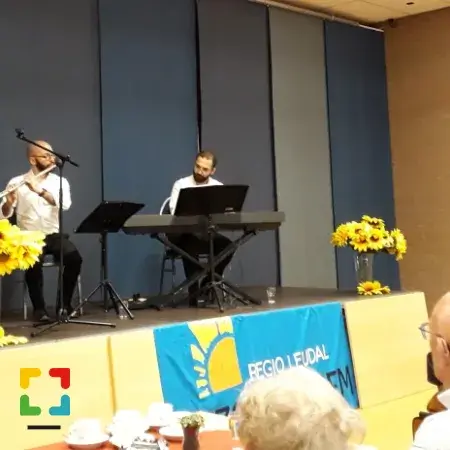 De muziekmiddag “Jong voor Oud” op 19 mei in Buggenum is zeer succesvol verlopen. Voor de pauze traden er twee mannen (Duo Copares) op uit Griekenland en Cyprus, beiden hoog opgeleid in de klassieke muziek. Ze maakten een mooi programma met een muzikale reis door Europese landen. Verschillende componisten, met voor iedereen herkenbare melodieën. Een tango variant, het Italiaanse ‘La Traviata’, Hongaarse, Griekse en Franse muziek. En ook Johan Strauss, een beetje ‘Rieu’. Het ‘koor in de zaal’ zong met veel plezier mee!