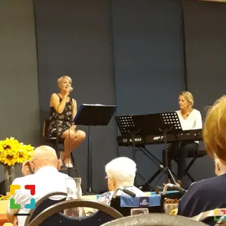 Na de koffie en cake hebben Willeke, een Roermondse zangeres onder begeleiding van Jolanda op de piano, allen verrast met een medley van Limburgse en Nederlandse liedjes. Het was een feestje om bij ieder liedje mee te kunnen zingen. Over ‘Gelök leet euveral verborge’ en ‘Pluk de dag’. Liedjes over het leven, over liefde en geluk, dat we vaak in de kleine dingen moeten zoeken. Iedereen genoot met volle teugen hiervan!