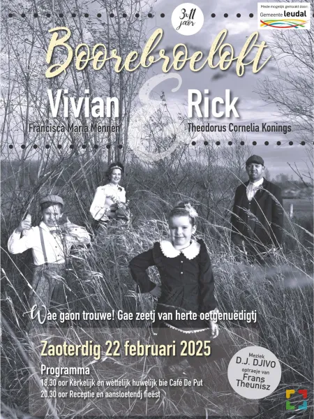 Dit jaor trouwe Vivian Mennen, dochter van Jan van Piet van Mennen en van José van Hansen vanne Sjoemaeker, en van Marijke van Nelis Vangenijgen en Mia van Hoeager Sjaekske, weurtj in ut onecht verbonje mit Rick Konings, zoon van Ben van Sjang van Konings en Nel vanne Pinx, en Nel van Sjarel van Töpkes Sjang van Nantes Mie van Sjötteles Door mìt elkaar in ut onecht.