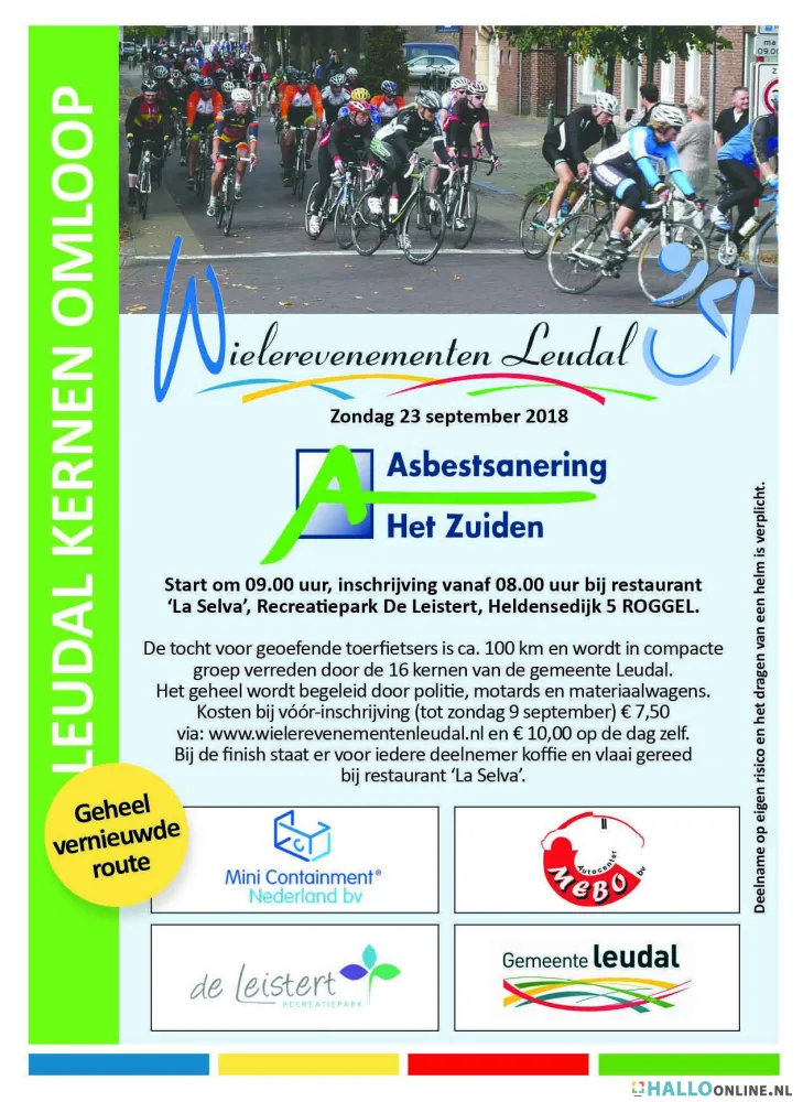 Als de vaste deelnemers de omloop 2018 aanbevelen bij nieuwkomers wordt de groep deelnemers dit jaar misschien wel groter dan ooit. De tocht op de racefiets - voor het eerst dit jaar dus tegen de wijzers van de klok in en over een deels nieuwe route - voert over mooie Midden-Limburgse wegen door de zestien kerkdorpen van de gemeente Leudal.