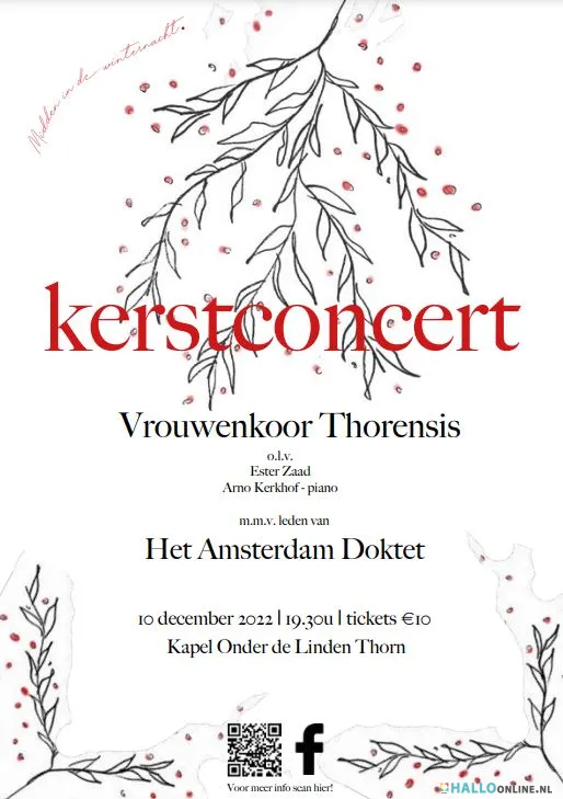 Op 10 december organiseert Vrouwenkoor Thorensis om 19:30 uur een gevarieerd kerstconcert, m.m.v. leden van strijkersensemble Het Amsterdam Doktet.