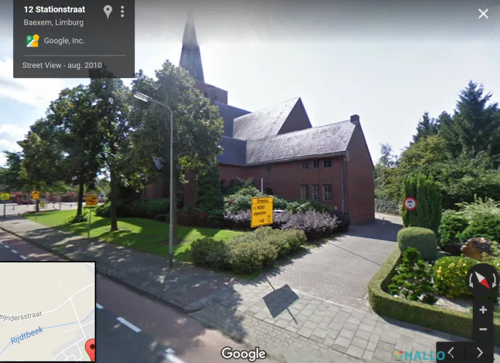 Langs de doorgaande weg vind je de kerk, als je op de doorgaande weg bent is rechts langs de kerk een paadje (zie foto!) Loop het paadje in tot aan het rood/witte paaltje.