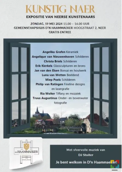 Gezellig erop uit op 1e Pinksterdag (19 mei)? Bezoek ‘Kunstig Naer!’ in D’n Haammaeker, Hoogstraat 2 in Neer. De expositie begint om 11.00 uur en duurt tot 16.00 uur. De entree is gratis.