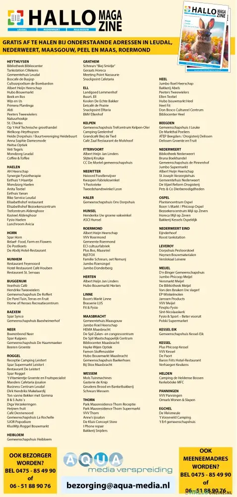 Verspreiding in gemeente Leudal en Nederweert en een zeer uitgebreid netwerk van meeneemadressen in Leudal, Nederweert, Maasgouw, Roermond en Peel en Maas.