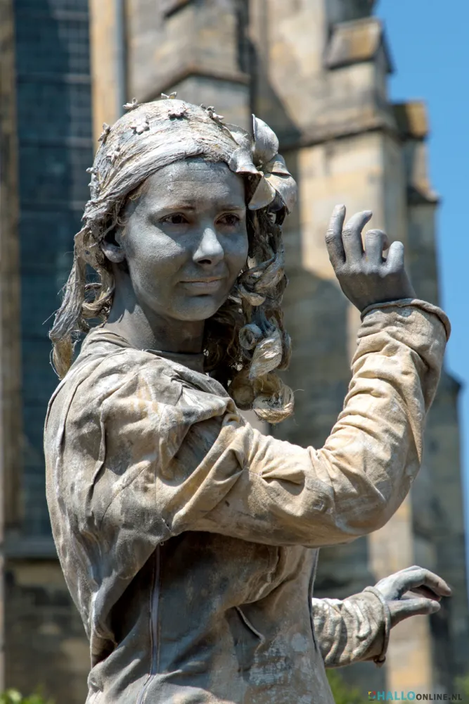 Na een korte ‘verkleedsessie’ mag u even zelf voelen hoe het is om een levend standbeeld te zijn.