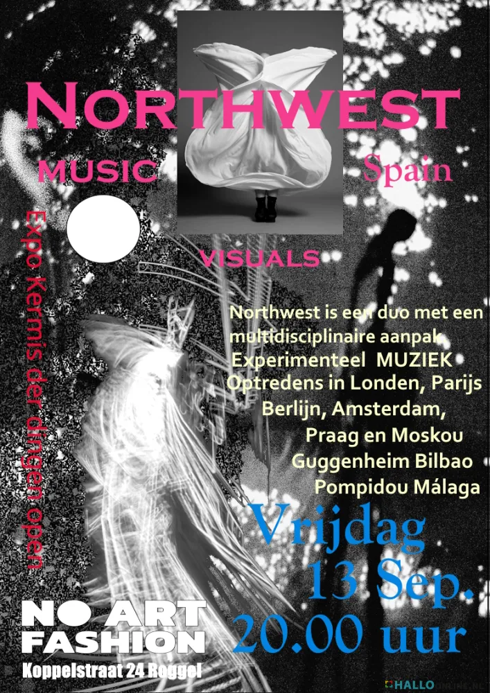 De naam van de band is Northwest. Wij zijn een duo met een multidisciplinaire aanpak, opgericht in Londen in 2015 en momenteel gevestigd in Madrid. Ons werk bestaat uit experimentele muziek, beeldende kunst, dans en een krachtige enscenering, beïnvloed door muzikanten als Mark Hollis en Scott Walker en andere artiesten als Pina Bausch, Louie Fuller of Andrei Tarkovsky. In de afgelopen jaren hebben we verschillende vocale en instrumentale albums uitgebracht en hebben we opgetreden in steden als Londen, Parijs, Berlijn, Amsterdam, Praag en Moskou en hedendaagse kunstcentra als Guggenheim Bilbao of Pompidou Málaga.