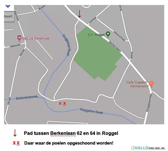 De poelen zijn te bereiken via het pad tussen de huisnummers 62 en 64 van de Berkenlaan in Roggel.