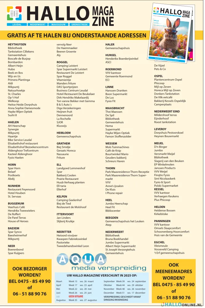 Deze week kunt u het magazine in uw brievenbus ontvangen of mag u HALLO Magazine meenemen op een van de 175 mee-neem-adressen.