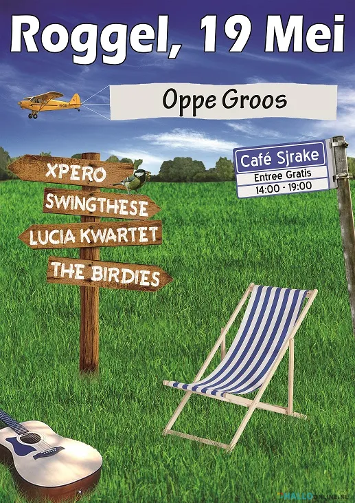 Voor de vijfde keer op rij (alleen onderbroken door de coronapandemie) organiseert bigband Xpero dit jaar het minifestival “OPPE GROOS” op eerste Pinksterdag bij café Sjrake in Roggel. Hierbij meer informatie over de line-up: in totaal zullen vier bands acte de présence geven. Naast bigband Xpero zelf zullen de The Birdies, het Lucia Kwartet en Swingthese hun opwachting maken.