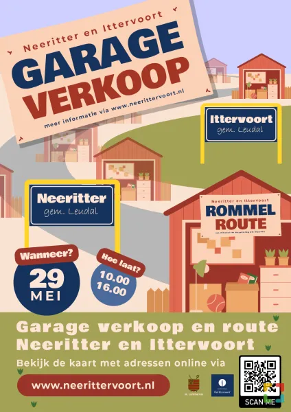 De Rommel Route Ittervoort is in samenwerking met de Garage Verkoop in Neeritter, waar dit evenement al 7 jaar met veel succes wordt georganiseerd. Dit betekent dat je op 29 mei zowel in Ittervoort als in Neeritter op zoek kunt gaan naar de leukste spullen!