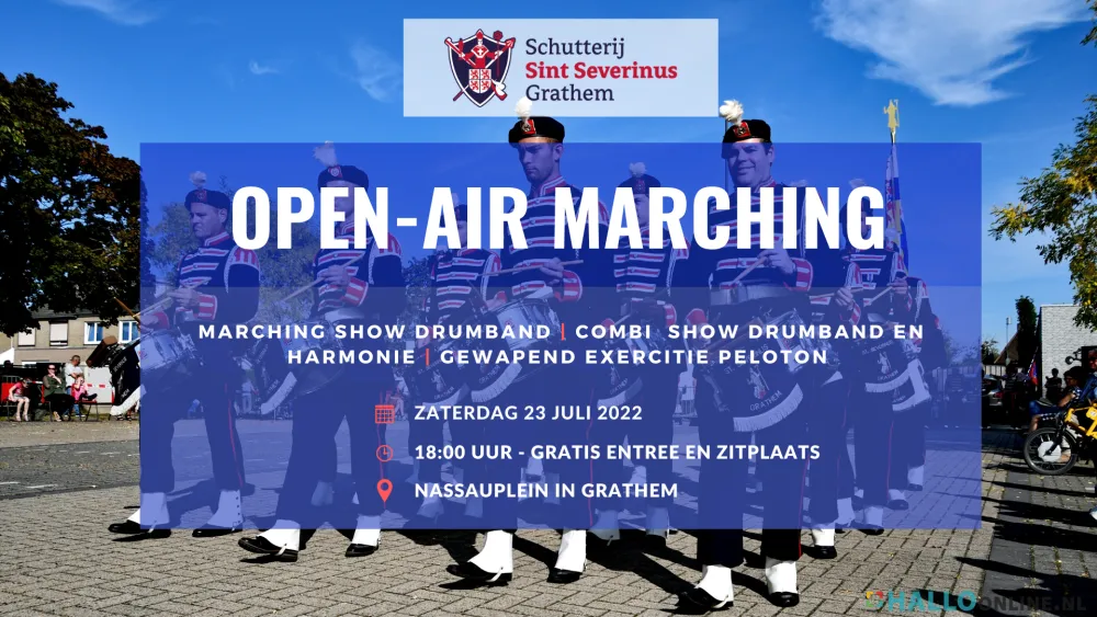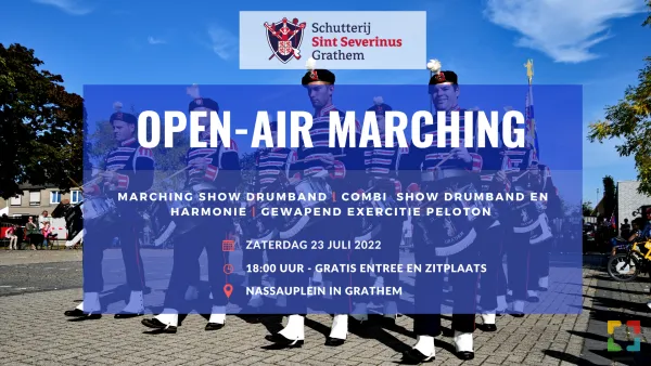 Schutterij St Severinus Grathem heeft weer een mooie activiteit op stapel staan: Open Air Marching op zaterdag 23 juli om 18 uur op het Nassauplein in Grathem.
