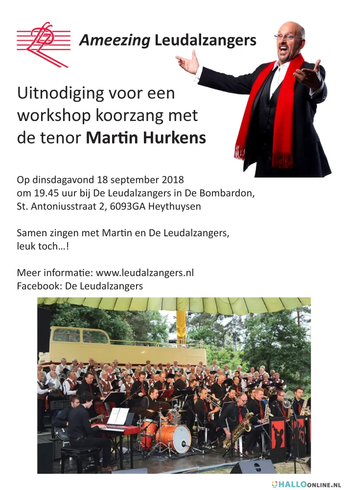 Op dinsdagavond 18 september 2018 om 19.45 uur bent je welkom in de Bombardon te Heythuysen om mee te zingen met Martin Hurkens en De Leudalzangers. In april 2017 werd de eerste workshop koorzang georganiseerd door De Leudalzangers uit Heythuysen. Ruim twintig mannen namen hieraan deel en acht heren besloten om actief lid te worden bij het koor.