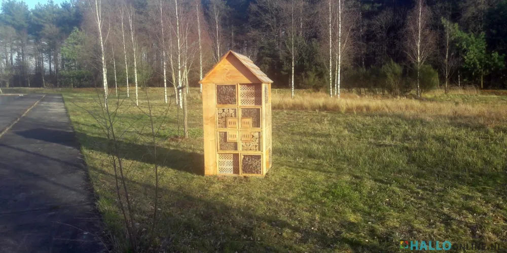 Vraag me niet waarom, maar ik heb het overleefd. Wat? Datgene wat de mensen ‘winter’ noemen. Mijn vrouw is al heengegaan, mijn kinderen zijn uitgevlogen, en ik werd op een dag wakker onder een hoop dorre bladeren. Ver vliegen kan ik niet meer, maar daarom hebben ze mij portier gemaakt van dit hier: een bijenhotel. Een voorbeeldig gebouw: hout, met gaatjes en daarachter lange gangen, die het verblijf voor ons wilde bijen erg prett…