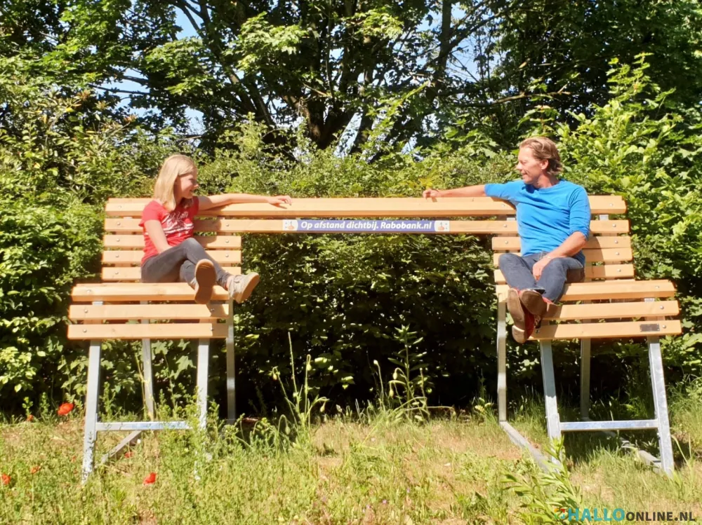 De komende maanden is in tien dorpen in Leudal de zogenoemde ‘anderhalve meter bank’ steeds twee weken te bewonderen en te gebruiken dankzij een samenwerking van de Baexemse kunstenaar met Rabobank Peel, Maas en Leudal.