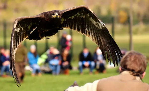 Vanaf de binnenplaats van het kasteel spreiden de roofvogels graag hun vleugels om een spectaculaire vrije vluchten te laten zien.