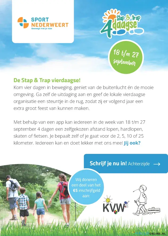 Nederweert, 26 augustus – Van 18 t/m 27 september vindt de Stap & Trap vierdaagse plaats.