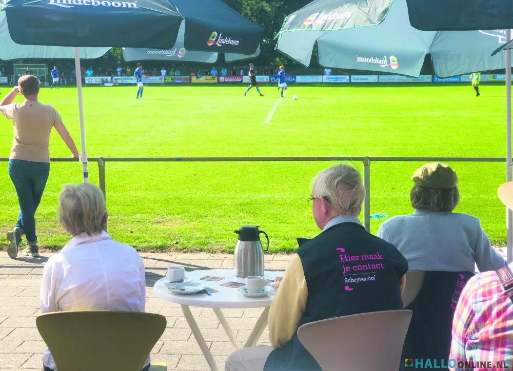 Afgelopen zondag speelde S.V. Heythuysen tegen F.C. Maasgouw. Met een eigen terras aan het veld hebben de Scheyvenhof bewoners flink aangemoedigd.