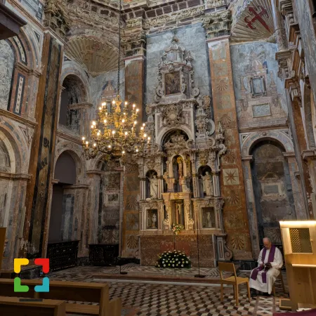 Het hoofdaltaar, gewijd aan de heilige Jacobus is een en al pracht en praal met veel goud, zilver en edelstenen.