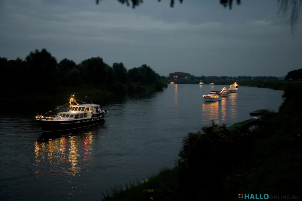 Rond de klok van 21:15 uur varen zij feestelijk voorbij ter hoogte van hotel De Spaenjerd te Ophoven. Vanaf deze locatie kan je de verlichte boten van ver zien aankomen en vervolgens zien voorbijvaren richting "Tegelhuuske".