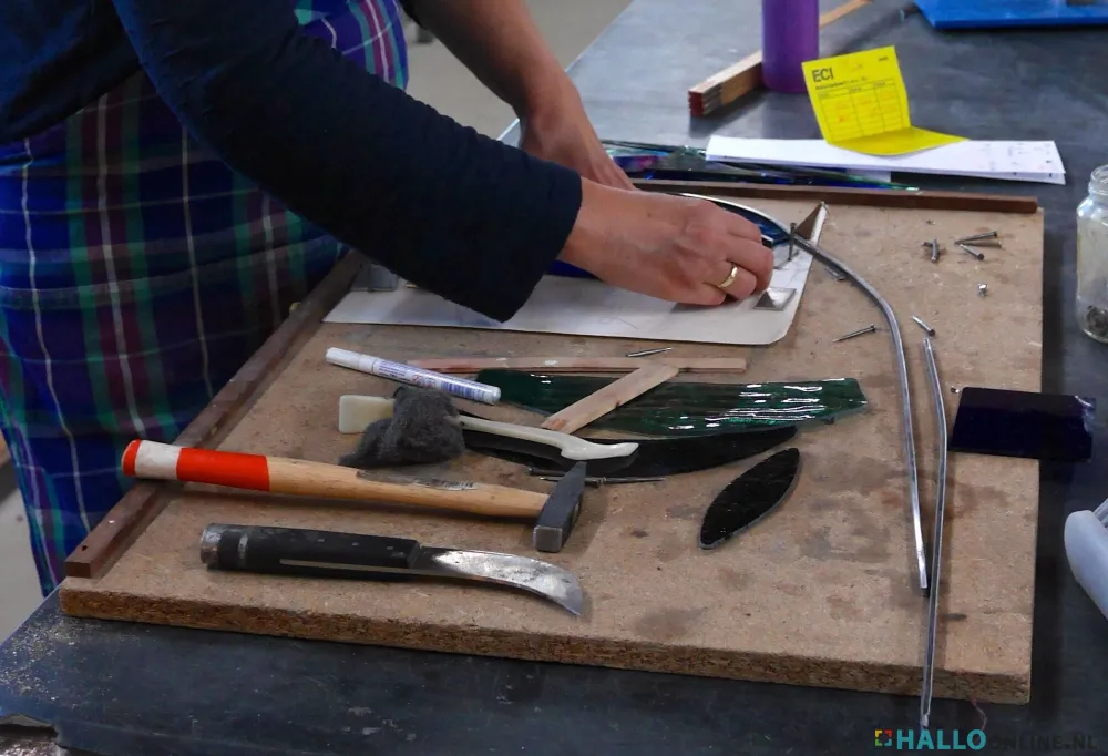 Duik in de praktijk van het glasatelier Nicolas - uitleg over glas in lood en brandschilderen in het Cuypershuis door glazenier en docente Ruth Houkes ( ECI Cultuurfabriek)