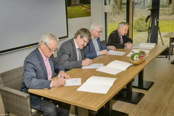 ‘Op 9 februari 2017 startte in feite de tweede fase met de ondertekening van een intentieovereenkomst tussen de gemeente, de Stichting Land van Horne, Staatsbosbeheer en het IVN’ gaat Loes verder. ‘Die bezegelde onder andere de inzet van de gemeente voor de realisatie van een veilige oversteek. Wethouder Walraven heeft zich daar sterk voor gemaakt, maar ook hierbij is de steun van de provincie onmisbaar geweest.’
