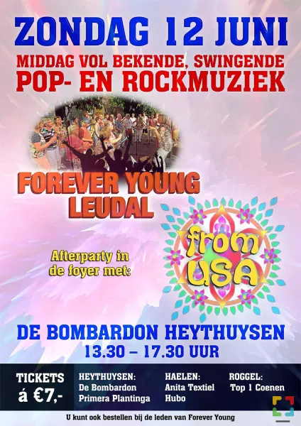 Tickets a 7 euro via de leden, Hubo en Anita textiel in Haelen, Bombardon en Primera Heythuysen, Top1 Coenen Roggel