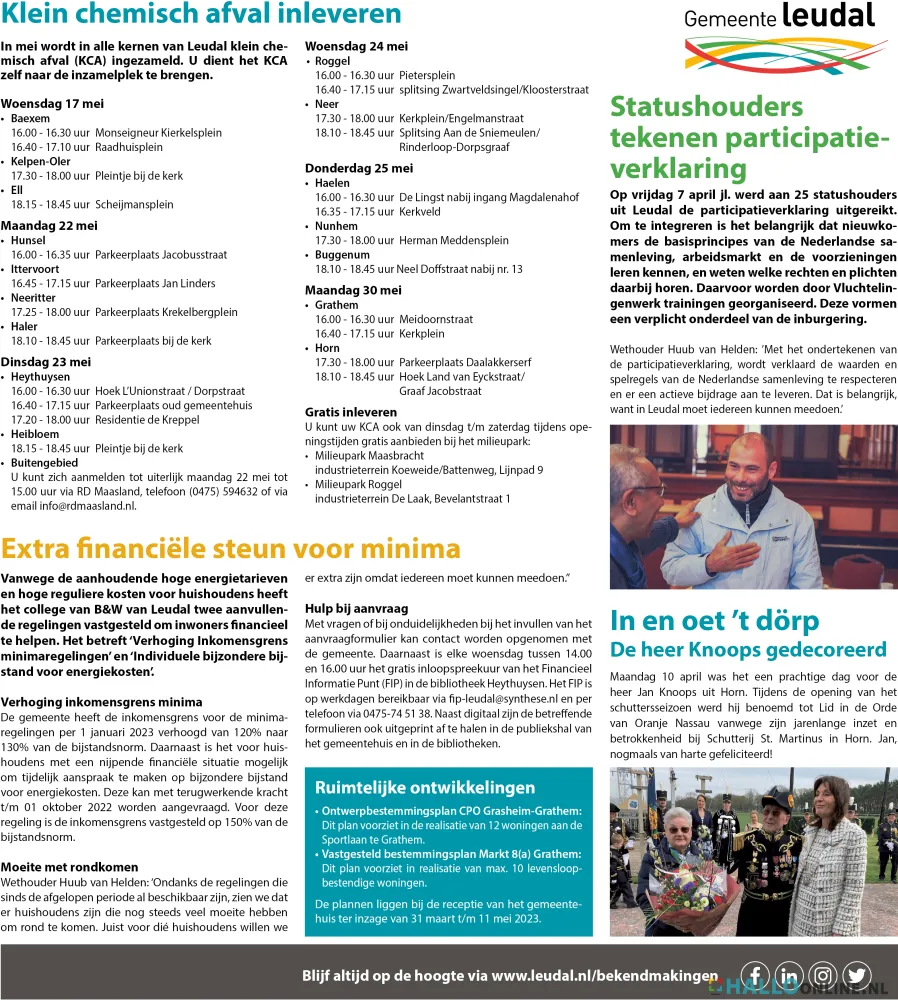 In de gemeente Leudal moet iedereen kunnen meedoen. En meedoen, begint bij goede informatievoorziening. We weten dat een grote groep inwoners veel waarde hecht aan print media. Daarom zetten we naast de doorontwikkeling op digitale informatievoorziening ook in op geprinte informatievoorziening.