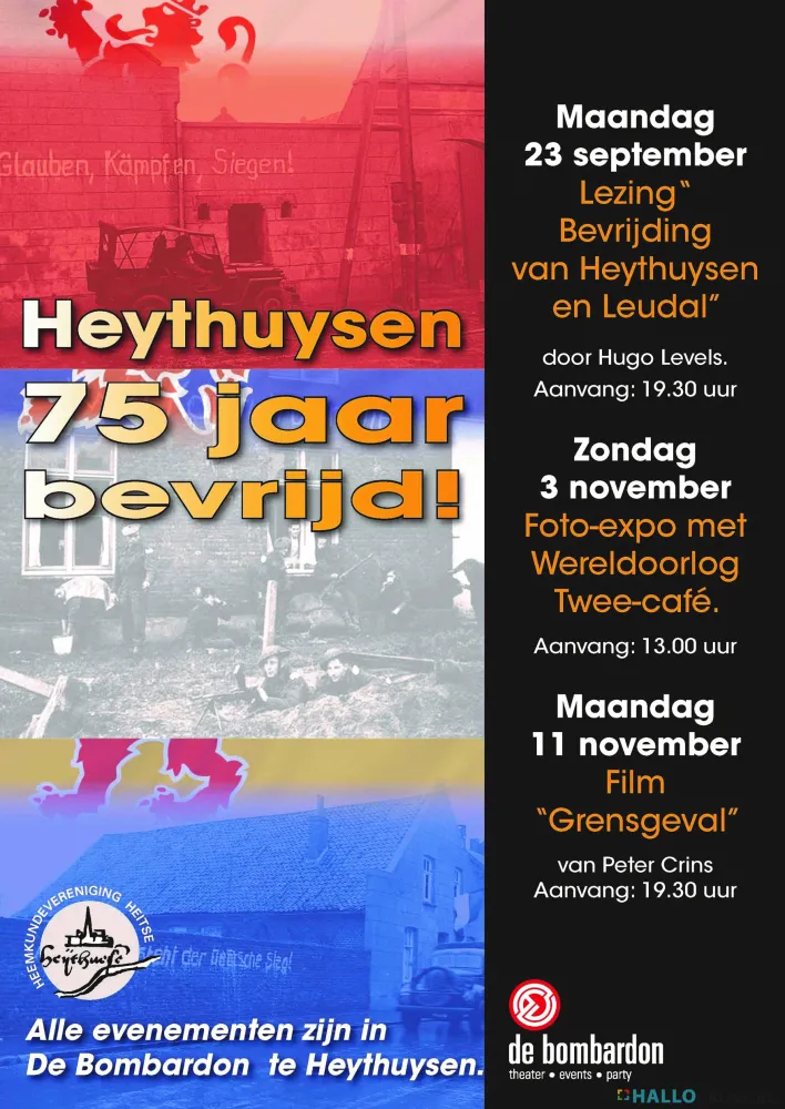 Op maandag 23 september houden Hugo Levels en Eric Munnicks op uitnodiging van HVH een ongetwijfeld boeiende lezing over de bevrijding van Heythuysen en het Leudal dit jaar precies 75 jaar geleden.