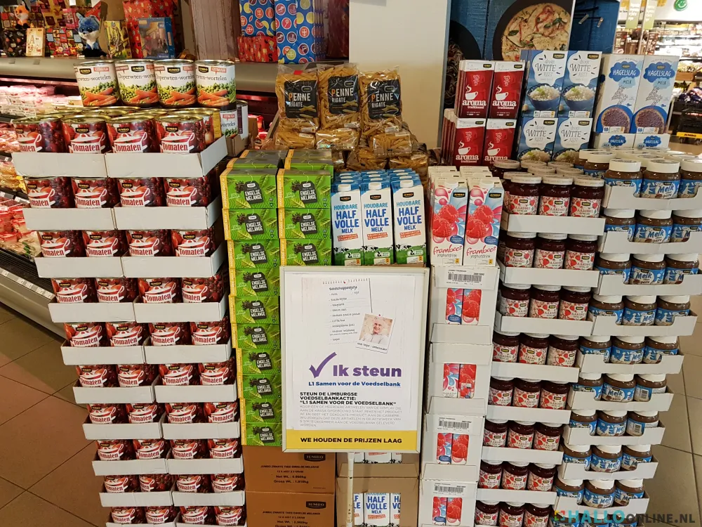 Klanten kunnen hier één of meerdere artikelen van kopen. Na het afrekenen van deze artikelen worden deze door Jumbo Roel Heerschap opgeslagen. In de actieweek van L1 van 5 t/m 13 december zal Jumbo Roel Heerschap de gedoneerde artikelen bezorgen bij de voedselbank.