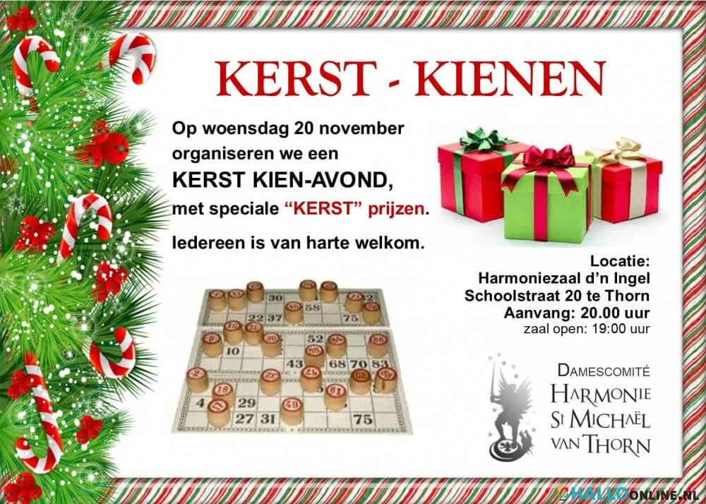 Op WOENSDAG 20 November, is er een gezellige KERST - kienavond (incl. loterij) voor iedereen. Er zijn weer zoals altijd, méér dan 65 MOOIE PRIJZEN te winnen. Tevens steunt u met uw deelname Harmonie St.Michaël.
