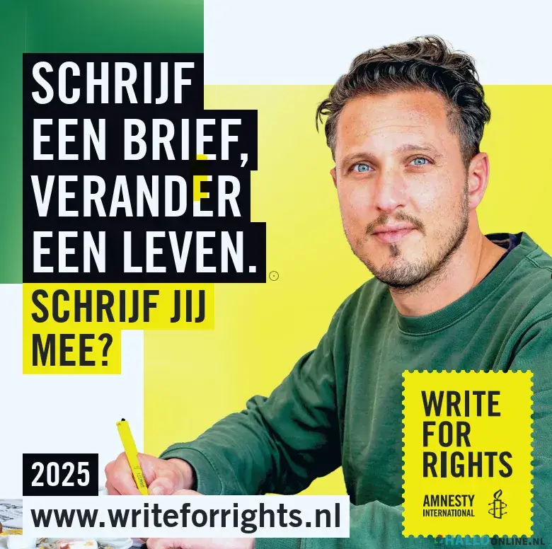 Kun je niet komen? Meeschrijven kan ook thuis: amnesty.nl/write-for-rights.
