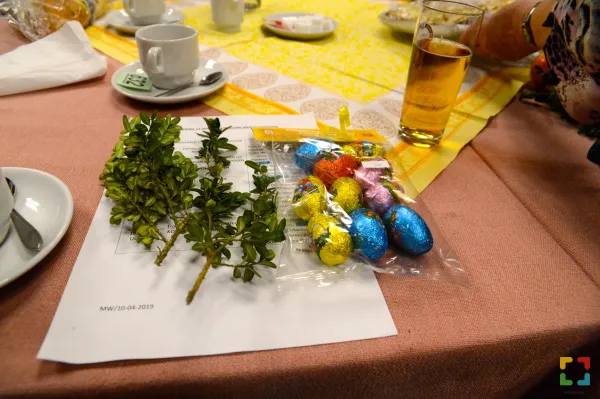 Na de mis was er een heerlijk buffet met warme en koude gerechten. Zoals ieder jaar was er ook een moment ingericht om het wel en wee van de vereniging mede te delen in de jaarvergadering. Daarna was er een loterij, alle aanwezigen hadden bij binnenkomst een lot gekregen en met dit lot was een mooie Paasprijs te winnen, zodat iedereen met iets lekkers naar huis ging.