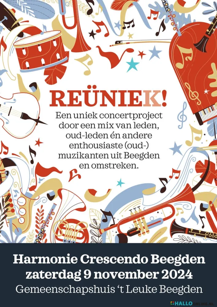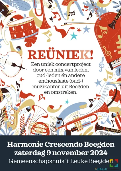 Dit reünieconcert, georganiseerd door Harmonie Crescendo, wordt een samenwerking met oud-leden én andere enthousiaste muzikanten uit Beegden en omstreken die de mooie hobby van 'samen muziek maken' weer willen ervaren.