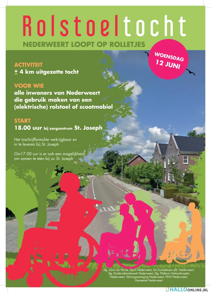 NB.: De rolstoeltocht is een samenwerking van Stg. Land van Horne, Sport Nederweert, Stg. Kindervakantiewerk Nederweert, Stg. Platform Gehandicapten Nederweert, Stg. De Zonnebloem afdeling Nederweert, PSW, Woningvereniging Nederweert en Gemeente Nederweert.