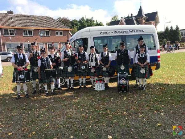 Om de wensbus bij een breder publiek onder de aandacht te brengen heeft wensbus Maasgouw op zondag 11 september een promotietour gehouden begeleid door de doedelzakband Pipes & drums Aldenghoor.
