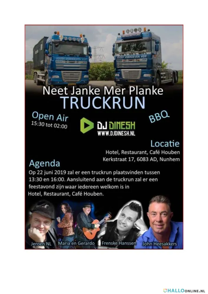 Om 13.30 uur vertrekt het konvooi van iets meer dan 120 vrachtwagens vanaf Café Houben in Nunhem voor een rit van ongeveer 2,5 uur door gemeente Leudal en Maasgouw.