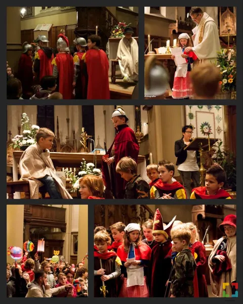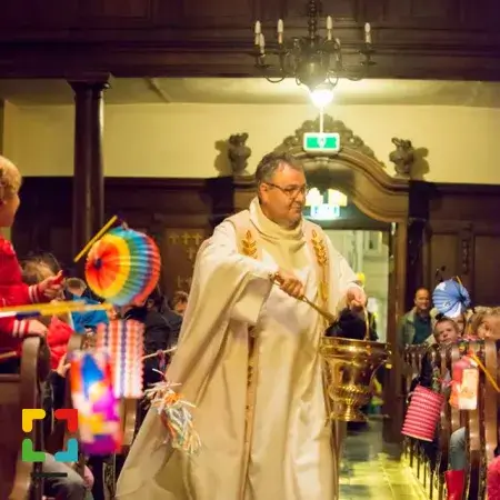 Het St. Maarten-schouwspel zal door kinderen worden opgevoerd en op het einde zullen onder begeleiding van het trom- en trompetgeschal van schutterij St. Nicolaas de kinderen met de versierde lampionnen, bieten en creaties, de kerk extra verlichten.