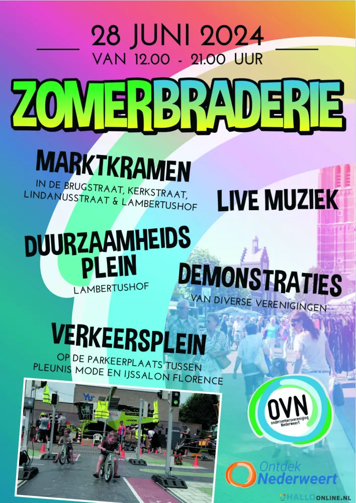 Op vrijdag 28 juni, van 12.00 tot 21.00 uur, vindt de jaarlijkse zomerbraderie plaats in het centrum van Nederweert, georganiseerd door Ondernemersvereniging Nederweert (OVN) in samenwerking met evenementenorganisatiebureau Eeri.