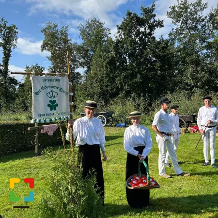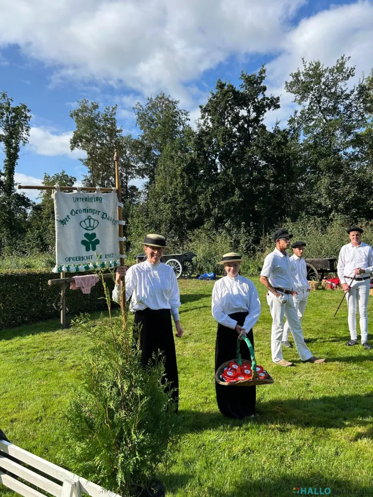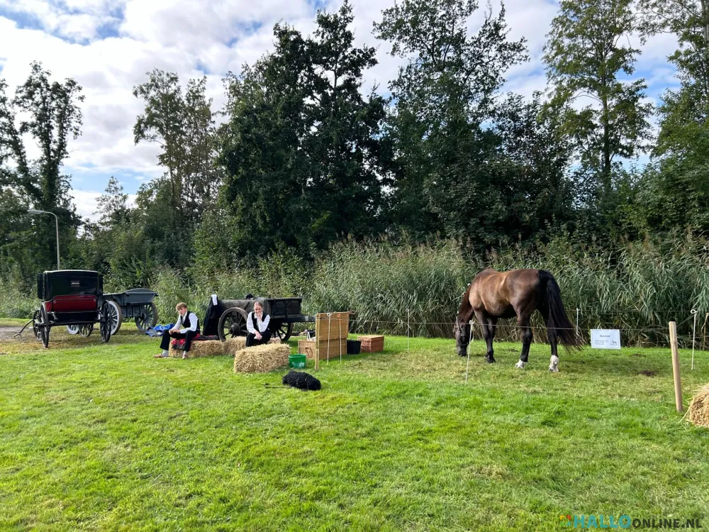 Nu terug naar ons bezoek aan een historische boerderij in Groningen. De eigenaren waren al lang geleden overleden en de bijbehorende grond was verkocht aan de bedrijven in de buurt. De laatste eigenaar was een vrijgezel die te weinig onderhoud had gepleegd, waardoor veel erfgoed in verval was geraakt. Een groep enthousiastelingen uit het dorp had een stichting gevormd om dit over te nemen en met veel vrijwilligerswerk weer in oude glorie te herstellen. Zoiets als bijvoorbeeld Eynderhoof in onze regionen. Tijdens de erfgoeddagen houden ze jaarlijks open deur voor het publiek. Dit jaar werd daarnaast ruimte geboden aan de vereniging Het Groninger Paard om op deze dag te laten zien hoe deze paarden vroeger naar een stamboekkeuring kwamen. Ze werden bereden, trokken de koets en alle begeleiders liepen in prachtige oude klederdrachten. Een schouwspel als een museum van oude cultuur.