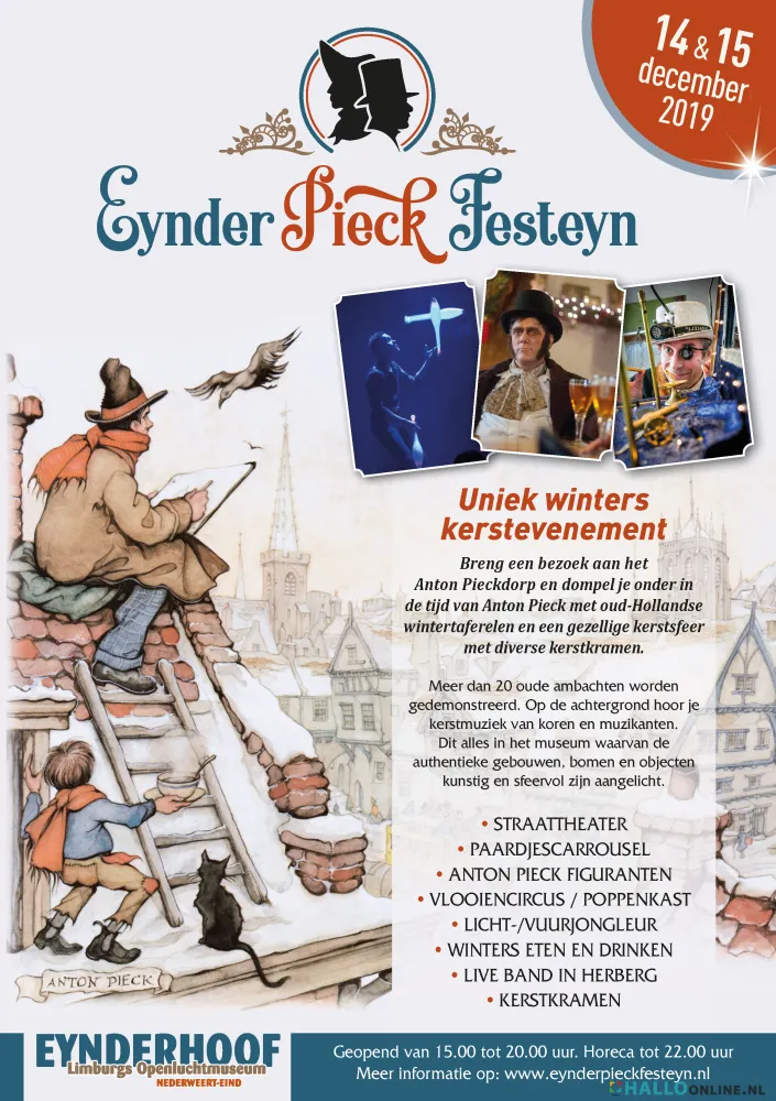 Tijdens het weekend van 14 en 15 december opent Openluchtmuseum Eynderhoof haar poorten van 15.00 tot 20.00 uur voor een uniek kerstevenement: het Eynder Pieck Festeyn. Dit wordt voor de eerste keer georganiseerd en staat in het teken van Anton Pieck met zijn Oudhollandse taferelen in een gezellige kerstsfeer.