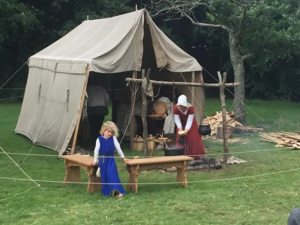 De riddergroep en hun gezinnen die tijdens de feesten in het kasteelpark in Horn hun kampement opslaan zullen tijdens de markt een aantal voorstellingen geven.