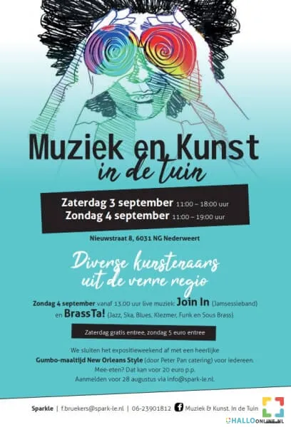 Wegens het muziekgenre en de lichte associatie die we kunnen maken met New Orleans, bieden we bezoekers van de expositie op zondag 4 september een Gumbo-maaltijd. Lange tafels onder de fruitbomen om heerlijk samen te genieten van muziek, maaltijd en mekaars gezelschap. Wel even aanmelden van tevoren. Dat kan tot 28 augustus a.s. door een mail te sturen naar info@spark-le.nl. Je ontvangt dan een betaalverzoek (20 euro p.p.).
