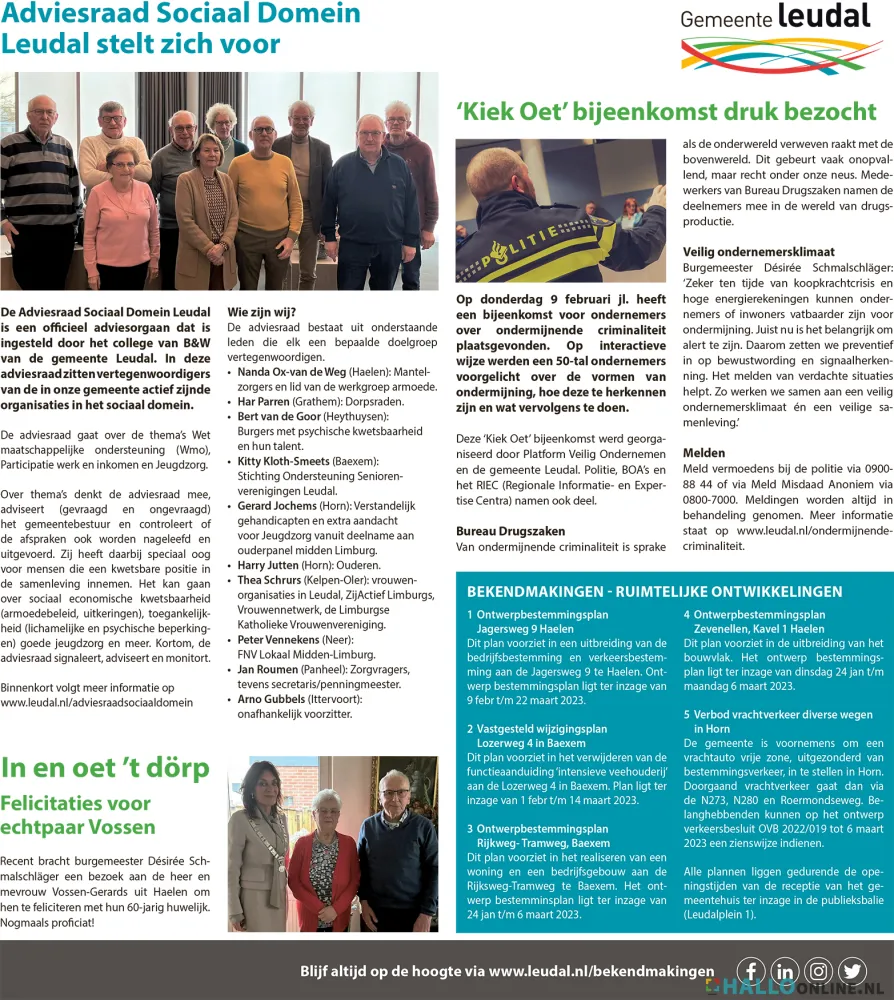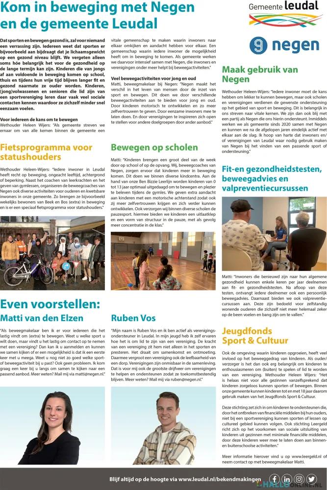 U vindt o.a. de maandelijks informatie, officiële bekendmakingen en nieuwsberichten in HALLO Magazine en op HALLO Magazine Online.nl