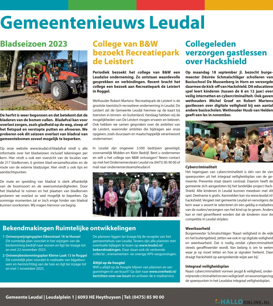 U vindt o.a. de maandelijks informatie, officiële bekendmakingen en nieuwsberichten in HALLO Magazine en op HALLO Magazine Online.nl